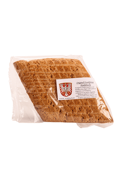 Haddekuchen mit dem klassischen Rautenmuster des Apfelweinglasses. Traditionell wurde der Haddekuche neben Knabber- auch als Würzbrot verwendent.